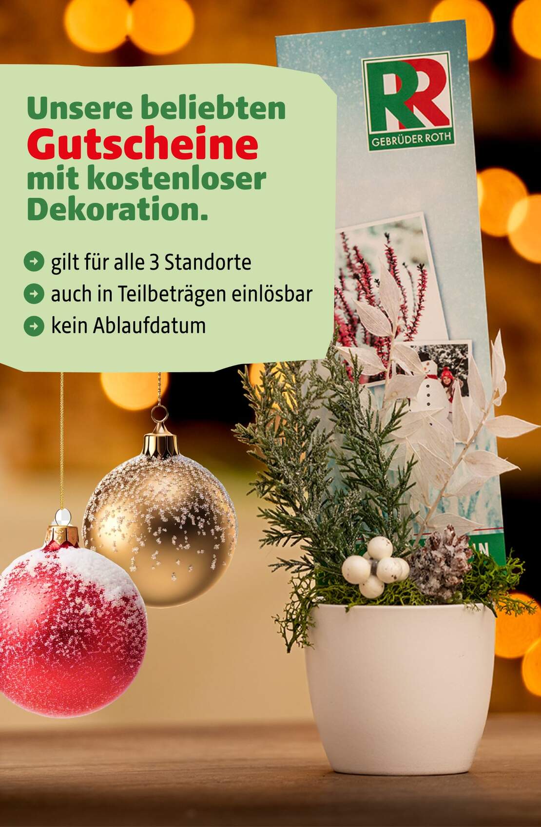Große Auswahl an weihnachtlichen Einpflanzungen und floristischen Dekorationen. Gern nehmen wir auch Ihre individuellen Bestellungen entgegen.