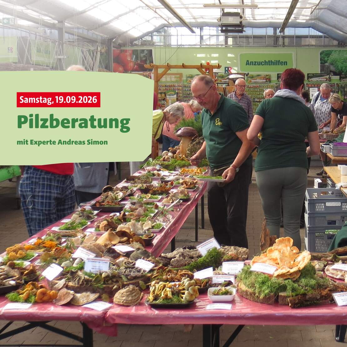 Die Pilzberater Andreas Simon des Vereins „Pilzberater Südwestsachsen e.V.“ führen eine kostenlose Pilzberatung durch. Es werden wieder über 100 Arten von Frischpilzen aus der Region präsentiert.